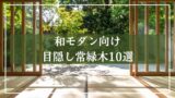 和風の生垣の写真に「生垣でおすすめの安い種類は?失敗しにくい6種類」とタイトル入りの写真 庭木・植栽・苔